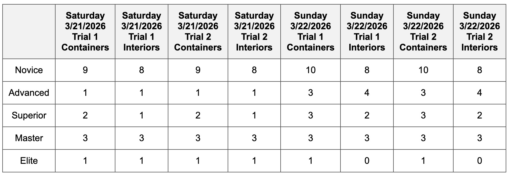 UKC Rally, and Nosework, March 21-22, 2026, Virginia, MN Entry Counts as of 3/5/26 - note they may go up or down. Rally Nosework < return to main page